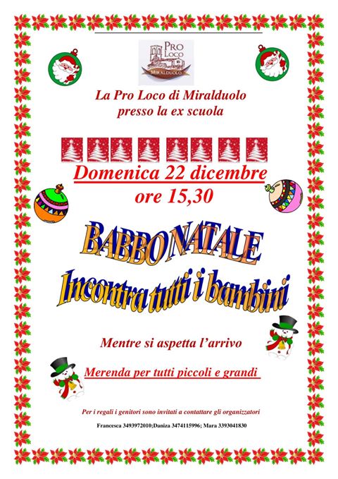 La magia del Natale è di tutti, in particolare dei bambini, Babbo Natale in persona arriverà a Miralduolo per consegnare i regali e rinnovare i desideri e i sogni di ciascuno.