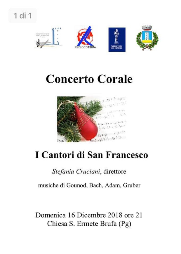 Domenica 16 dicembre ore 21:00 presso la Chiesa di S. Ermete a Brufa: Concerto Corale "I Cantori di San Francesco"(a cura dell'Associazione Musicale Ciro Scarponi Torgiano)