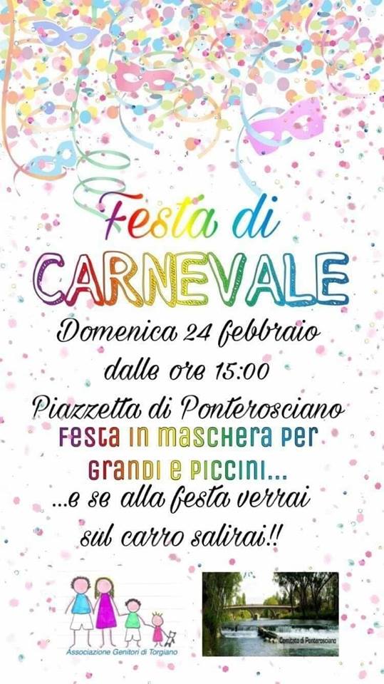 Domenica 24 febbraio dalle ore 15:00Piazzetta di Ponterosciano - TorgianoFesta in Maschera per Grandi e Piccini con carri allegorici!!!