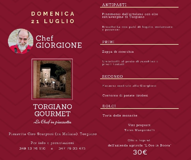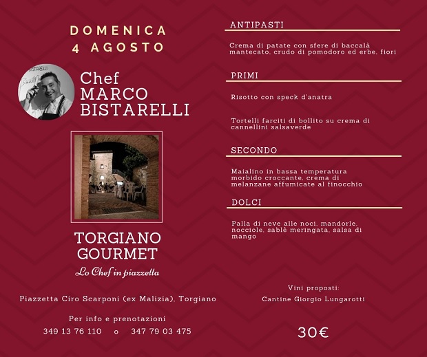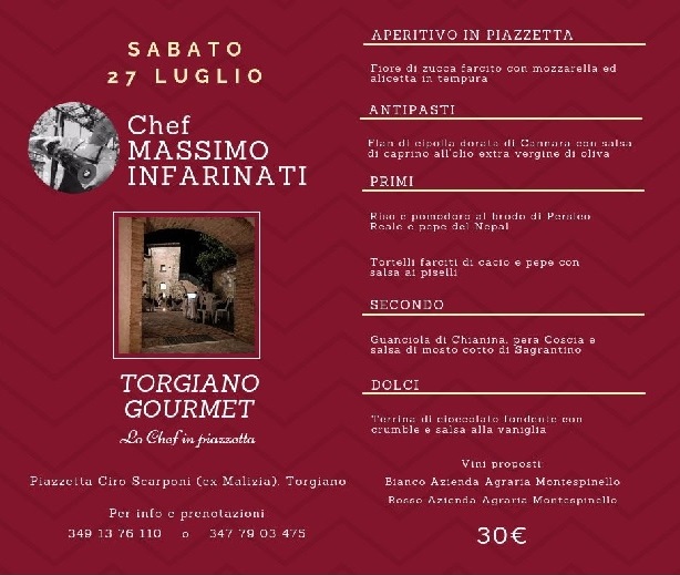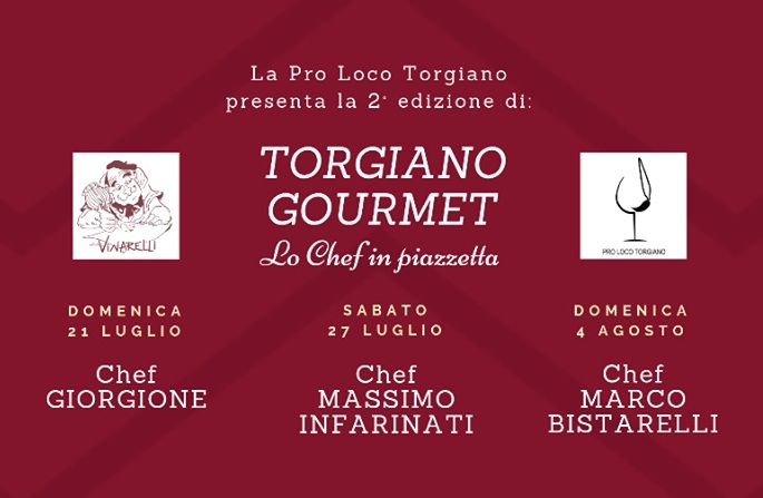 Lo chef in Piazzetta! 3 appuntamenti con la migliore cucina e i migliori vini di Torgiano! A deliziare i nostri palati saranno gli chef Giorgione, Massimo Infarinati e Marco Bistarelli.